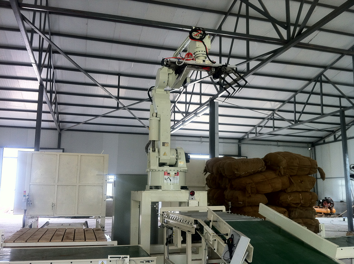 碼垛機器人適應于化工、飲料、食品、啤酒、塑料、空調等生產企業(yè)對紙箱、袋裝、罐裝、盒裝、瓶裝等各種形狀的成品進行裝箱和碼垛。結構非常簡單,容易保養(yǎng)及維修;主要構成零件少,配件少,所以維護費用很低;機械手碼垛機可以設置在狹窄的空間,即可有效的使用;全部控制可在控制柜屏幕上操作即可,操作非常簡單。配備機器手可替代不少工人的工作量,由此每年能節(jié)省幾十萬的人力資源成本,達到減員增效。